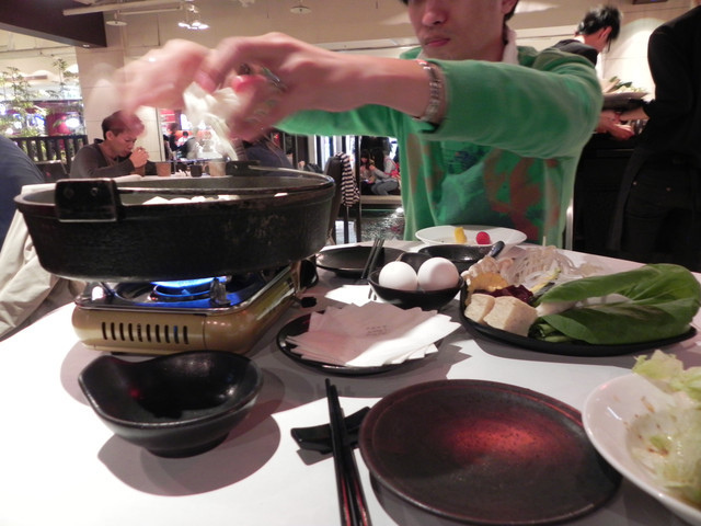 然後壽喜燒煮久會鹹~要個生水來加湯~ 也是七拖八拖的~