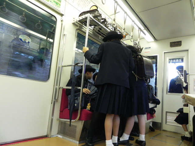 →在車上偷拍日本學生搭電車情景~她們的書包真的好可愛!