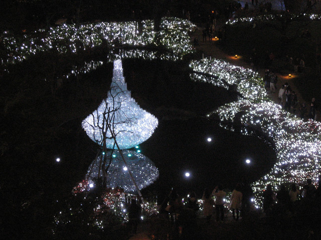 加上日本人很貼心~ 還在周邊設置倚子~讓大家可以坐在好視野的位置上欣賞夜景
