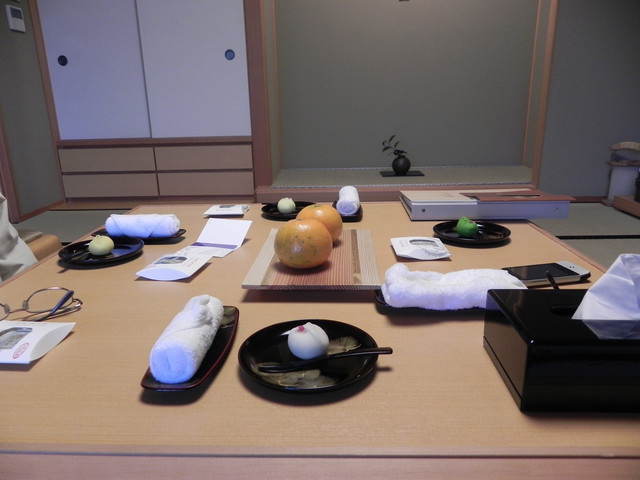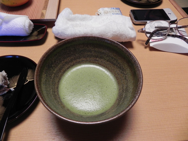 我們一入房 她就送上抹茶與煎茶還有日本果子給我們吃