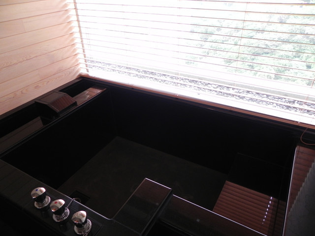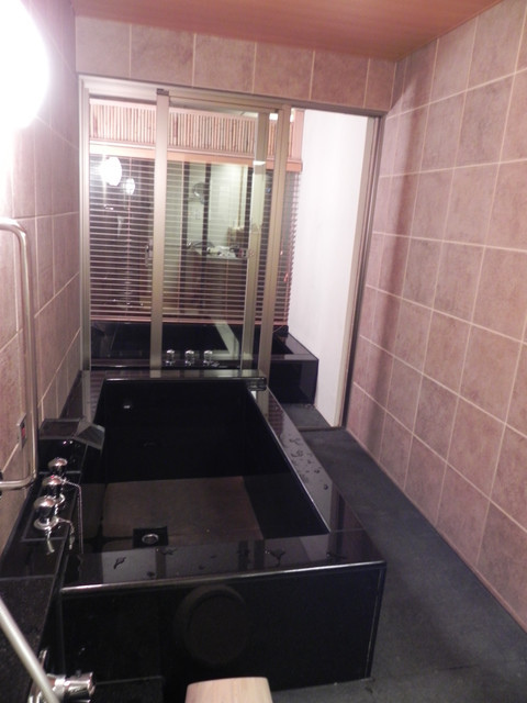 →半露天浴缸 其實我個人覺得....比較不像露天! 旁邊是玻璃門跟木門 有點像室內的感覺