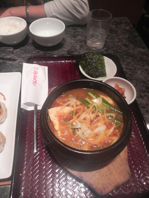 所以簡單點了一鍋石頭豆腐鍋跟一盤烤肉泡菜壽司