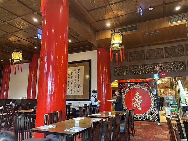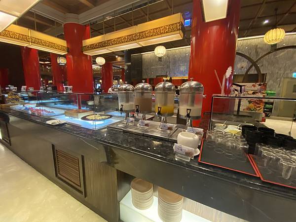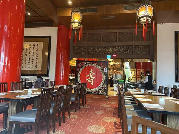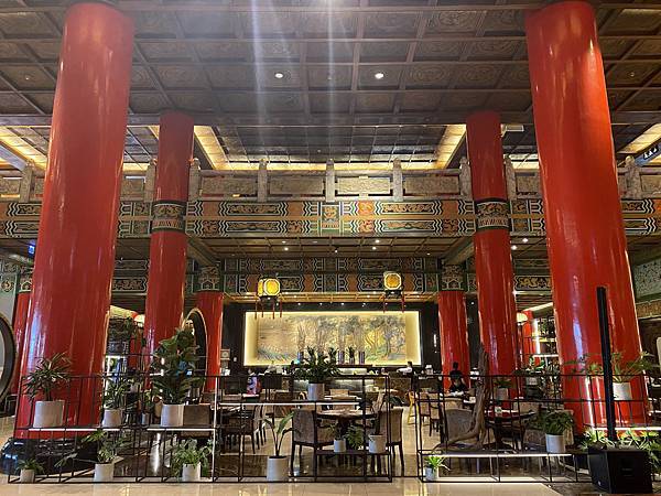 (▶早餐用餐地方,這些柱子的紅色,是特別色叫圓山紅)