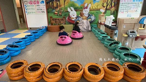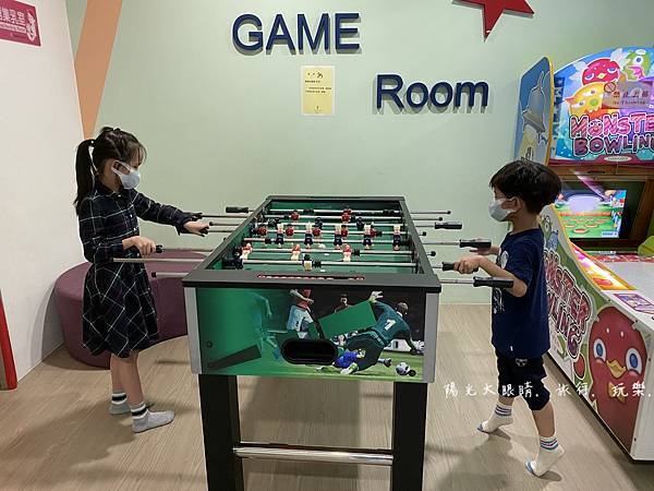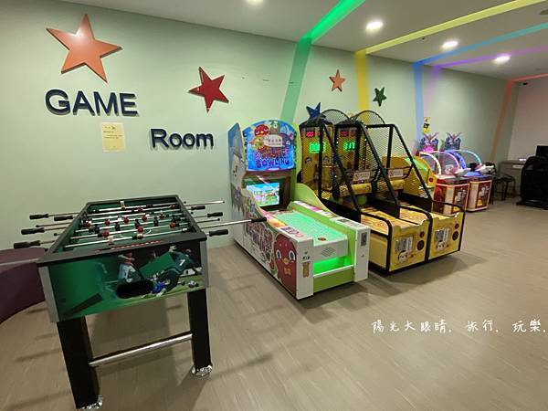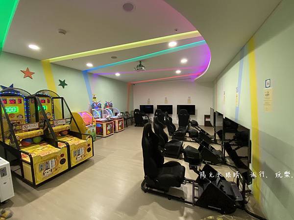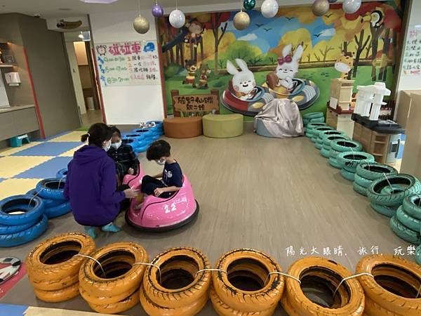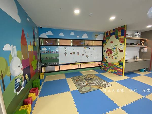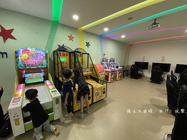 我們下午抵達飯店就直奔二樓的親子遊戲室,整個遊戲室空間很寬敞,有一處是溜滑梯球池區,適合愛玩球池的孩子,另一處是辦家家酒區,有廚房用具等適合女孩子,旁邊就是小小孩愛玩的碰碰車,不過它有開放時間限制喔!還有體重的限制,要玩之前工作人員會先量孩子的體重,合格了才會讓小孩進去玩。喜歡靜態的孩子,碰碰車旁邊有一個樂高積木牆可以自由創作,再來旁邊有個房間進去,就是電動遊戲區,可以跟工作人員報房號就可以玩賽車遊戲,附近還有需要投幣的投籃機跟一些遊戲機台。