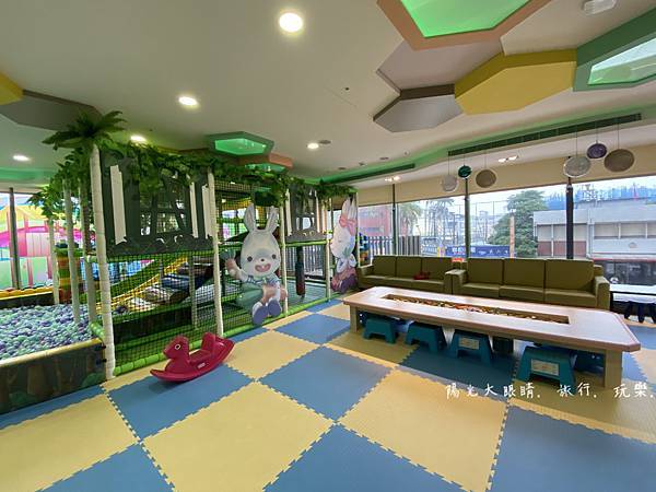 遊戲室旁邊還有大沙發區可以供家長休息,真心覺得悅川飯店的工作人員很盡責細心,一個遊戲室就有至少五位工作人員隨時盯著孩子的安全,如果有孩子哭鬧,工作人員會很迅速地過來幫忙處理小孩,我在旁邊休息時,就觀察到這裡的工作人員教育訓練做得很好,家長當然也就可以很放心地讓小孩去玩。