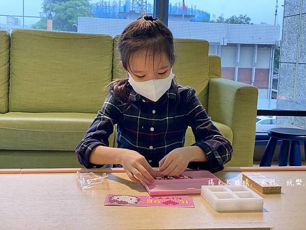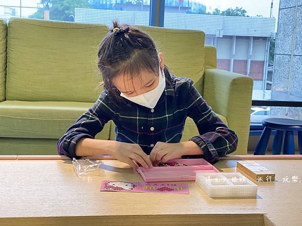 大孩子若喜歡玩珠珠diy,也可以選擇喜歡製作的商品選項,工作人員會先教導孩子如何製作,之後就會由小孩來自己操作,我們家娃娃就選了鉛筆盒自己把珠珠一顆顆裝上去,這比較適合小學生喔!