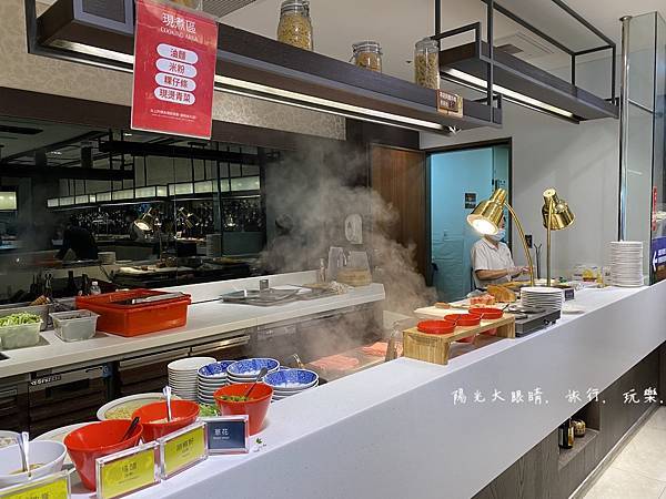 早餐位於三樓的羅琳西餐廳,早餐種類很多種,真的很大推,早餐還有現煮湯麵米粉可以吃,西式中式都有,餐廳環境明亮乾淨,邊享用早餐旁邊還會有小火車呼嘯而過喔!