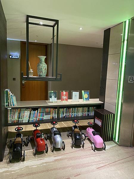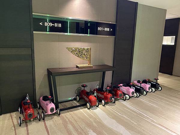 飯店經營的用心,每一處都看得見,每一樓層電梯口,都會擺滿許多兒童車可以供有小孩的房客帶到房間玩,感覺小孩不管走到哪就玩到哪的概念 。
