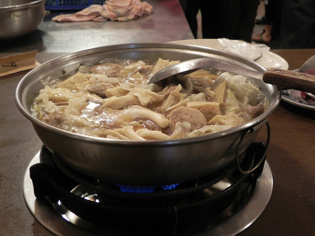 這間羊肉爐的湯頭是清燉羊肉湯去熬煮